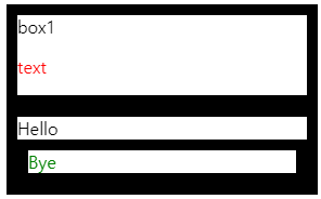 CSS 그룹 선택자 box1 box2 .box { color: blue; } .box.border-box, .box.bg-box { border: 10px solid #000; } 여러개의 선택자를 가져와서 쉼표를 이용해 작성하여 스타일 시트 크기를 줄일 수 있다. 끝