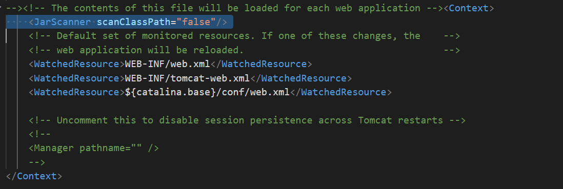 <Context> 태그 안에 <JarScanner scanClassPath="false"/> 코드를 추가하자.